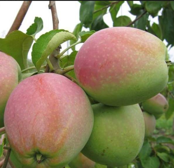 - Плоды: Яблоки среднего и крупного размера, с тонкой, но прочной кожицей, желтого цвета с румяным оттенком. Мякоть сочная, кисло-сладкая, с приятным ароматом.
